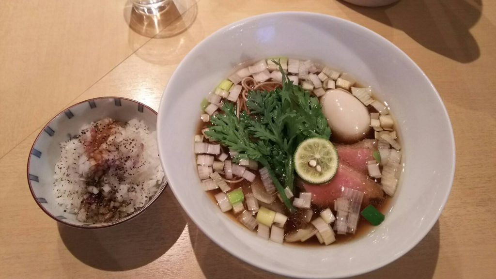 秋葉原の『くろ喜』で昼食。あっさり鴨ラーメン、これでこんなに美味いんだからメインの塩ラーメン