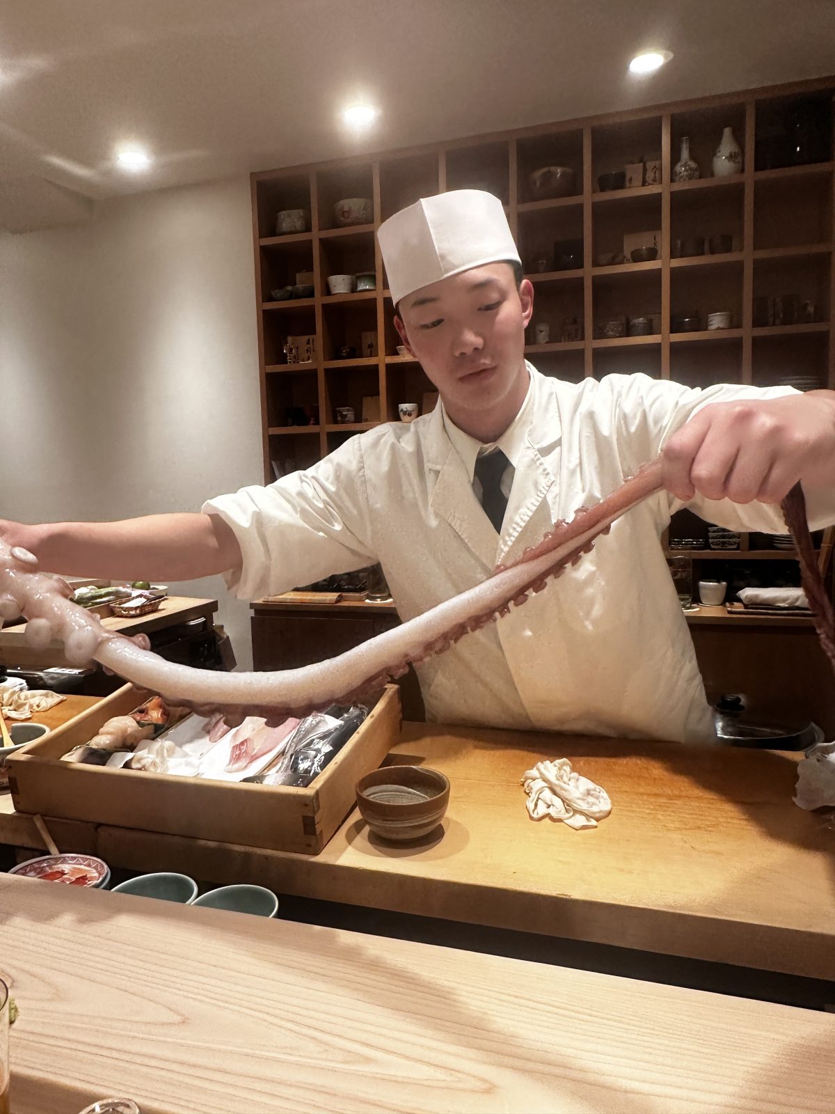 鮨やつまみと続き、なんと、長いでかい生タコが出てきました、これには驚きました‼️ これはおかわり必須