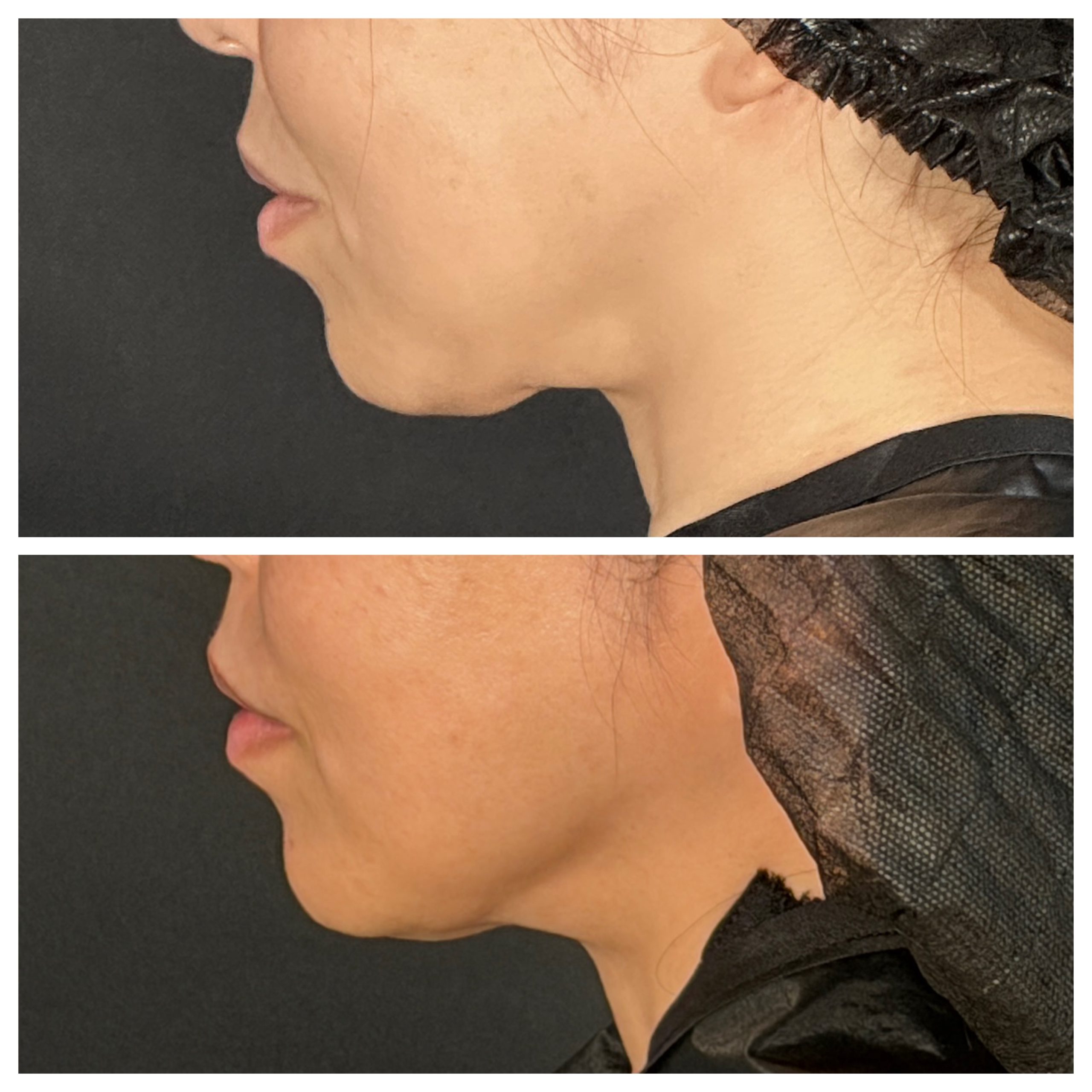 そして、白いラインを見てください。深めの脂肪層にしっかり熱を届けて効かせているので、 アゴの肉、そう、あの頑固な「二重アゴ」が劇的に改善‼️‼️🔥👯♀️ モニター様も、この劇的な変化に、とても喜ばれました💖🥰